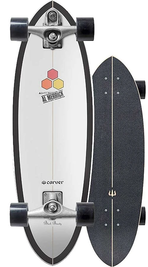 Comes with Carver’s hybrid surf and skate truck. On the one hand it’s a lightweight standard RKP (Reverse King Pin) hanger and base, on the other it has a patented geometry that squeezes every bit of turn and pump from the system. This means that you can pump this truck like a C7, but it lands airs and rides fakie with more stability as well. This opens up aerial maneuvers, and keys in with the latest progression of airs in surfIng.