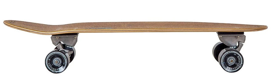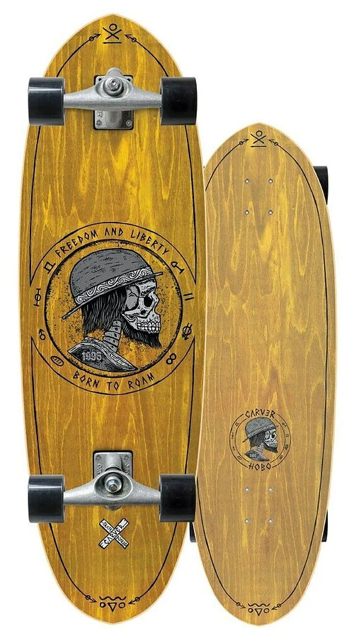 The hobo tradition is one of freedom and travel, and of working just enough to get by while you explore the world around you, an itinerant lifestyle that is echoed in the surfer’s peripatetic exploration of far away breaks. With folk art ingenuity the hobo carved unique portraits onto common nickels, transforming a mere five cents into something of great value for trade. We celebrate the hobo and their counterculture spirit with this amber maple veneer deck featuring a classic hobo nickel design and clear sugar coat grip. With a longer wheelbase for more drawn out carves and easy pushing, this board will take you anywhere you want to go.Â
