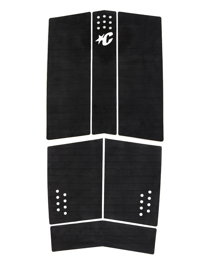 Better than wax! The Full Deck traction pad is a 6-piece full deck pad with Flat Cord traction pattern. Match it back with your favourite tail pad and never have to de-wax your board again.