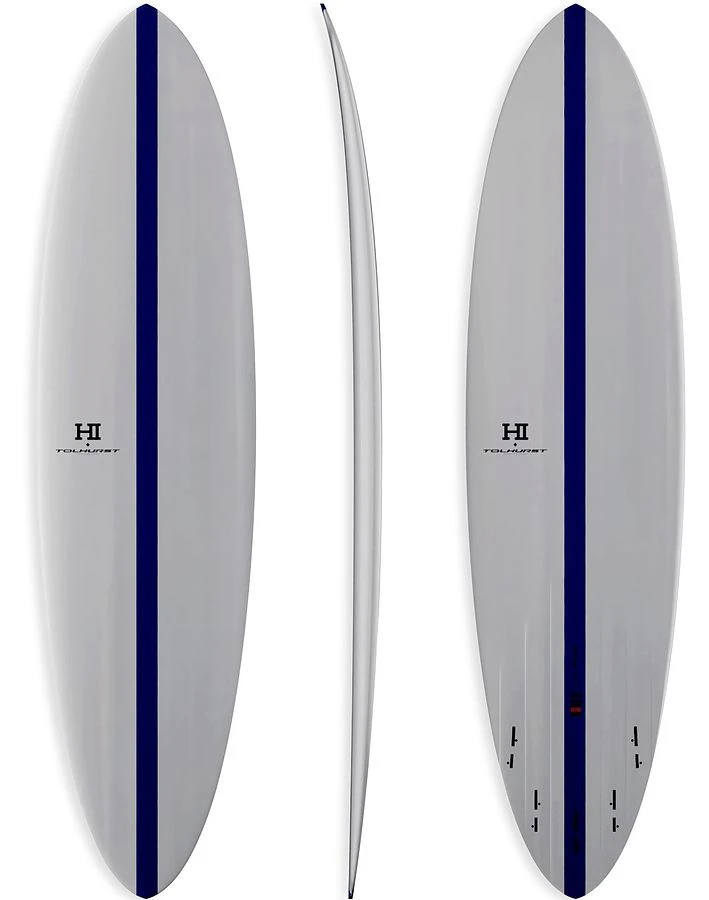 The Mid6 is currently available in 3 sizes. Smallest being a 7’0 x 20 1/2 x 2 5/8 at 40.3L and the largest is a 7’10 x 21 1/4 x 2 3/4 at 50.6L. The 7’6 in between at 21 x 2 3/4 and 47.9L I wouldn’t say is a direct scale between the 7’0 and 7’10. It shares all the same performance attributes but has a much larger rail size for someone who wants more volume out wide.