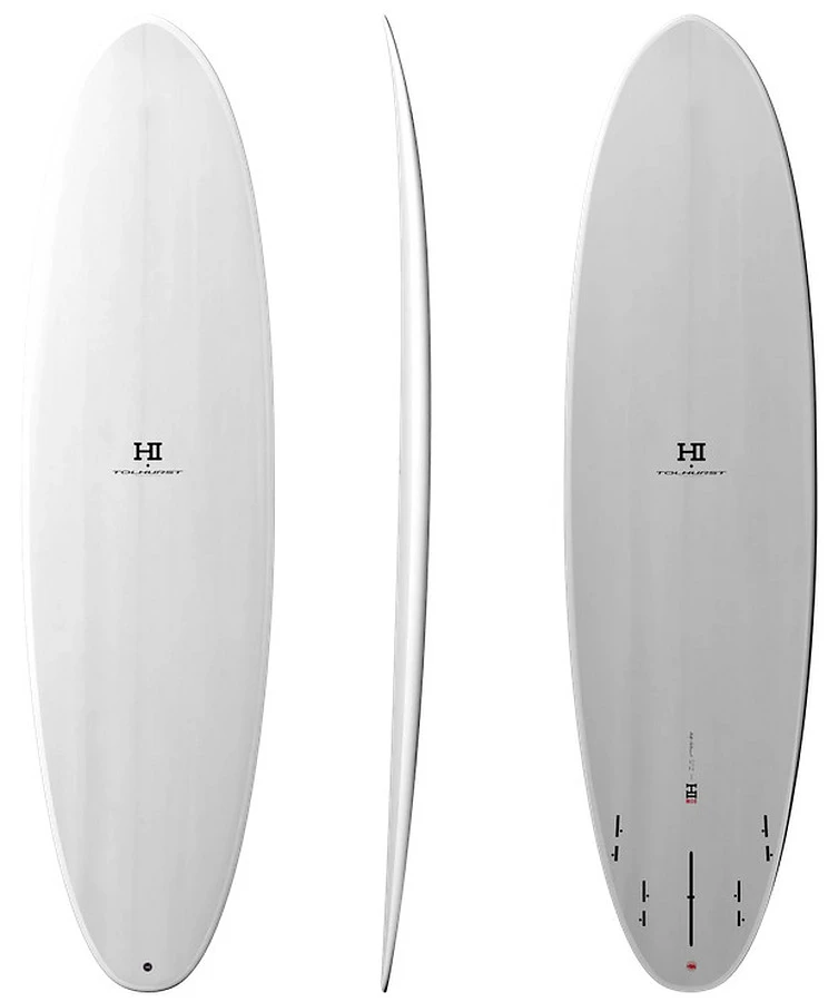 The Moe is a mid-length that caters equally to beginners, experienced shortboarders looking for a bit more volume on slow days, and experienced longboarders who feel like riding something a bit shorter. The width and volume distribution give the Moe good paddle power without sacrificing maneuverability, while a flat bottom contour up front gives way to double concave beneath the fins for drive and big carves. Thin rails that transition from rounded up front to a hard, tucked-under edge through the tail keep the board sensitive and provide control. With a large sweet spot and a variety of fin options available, this is a wide-spectrum, high-performance, user-friendly board that works for all skill levels, and helps bring the fun back to everyday sessions. It really excels in weaker waves.