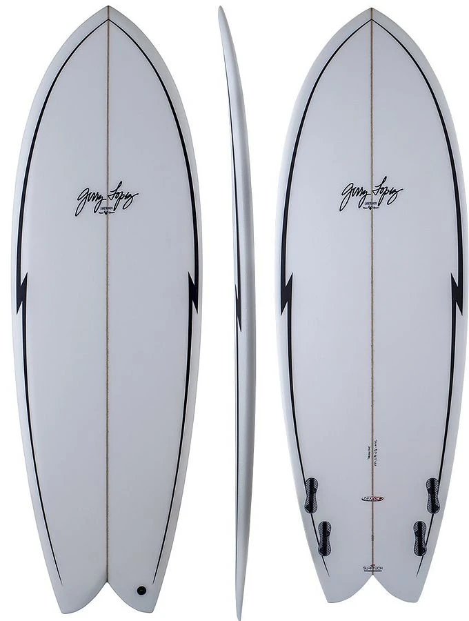 SOMETHING FISHY Back in the early 1970s, Steve Lis created a surfboard design that has endured through the decades and is as valid today as it was almost 50 years ago. The Fish design has gone through just about every permutation and probably most shapers. The Something Fishy is a blend of the old template and Gerry’s take on rails, bottom shape, and rocker. We like how it works and, if you are a Fish lover, we think you might too. ***Fins not included.